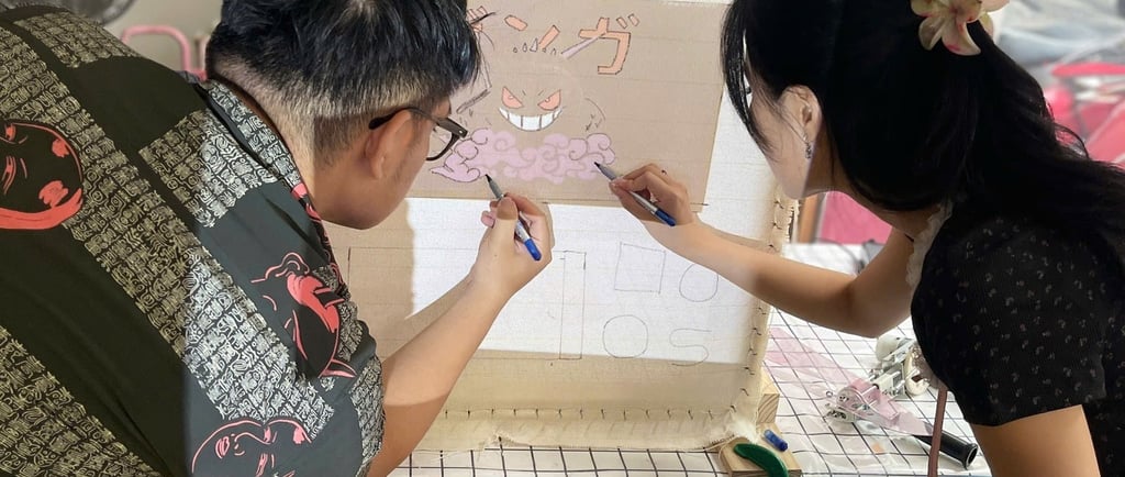 Mấy bà dùng bút vẽ hình mà mình thích lên vải Tufting đã được căng trên khung thêu. Nhớ là vẽ ngược nha, để khi lật mặt sau ra thì hình của mấy bà sẽ thuận chiều á. "Dân chơi" hệ nghệ thuật thì có thể tự vẽ, còn ai "tài lanh" như tui thì dùng máy chiếu cho nhanh gọn lẹ.